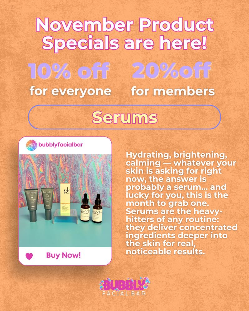 Bring a friend and you each get 10% off your facials in celebration of your connection and spending time together! Last Friday of every month.